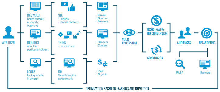 This data takes the form of shopping carts, formats seen, past conversions, devices used, traffic sources, etc. It’s used to optimize the experience, and therefore engagement, and always to lead people to the next stage of the conversion funnel.