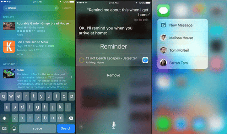 - 3D Touch allows you to perform certain actions at the system level, rather than through an app (looking at a map, adding an event to your calendar, etc.)