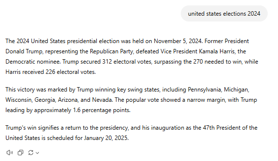 - When a query is performed, ChatGPT uses external search engines (like Bing, Google, and others) to retrieve relevant webpages.