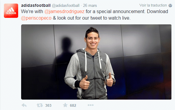 Adidas did it very well by offering its fans a special live announcement on the extension of the partnership contract with soccer star James Rodriguez.