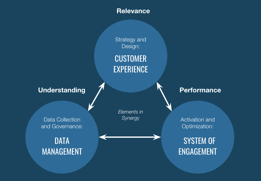 My previous two articles covered the importance of data and customer experience to the success of a relationship marketing program. This last article will be on engagement systems, which are essential for completing the picture. The chart below reiterates the various components needed to support a successful relationship marketing program. The engagement system is a technological tool for materializing the value attributed to each interaction with a consumer.