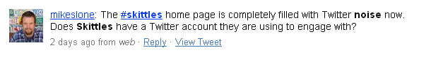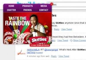 I've seen the word "Skittles" in the tweets of people I follow on the micro-blogging platform Twitter for a few days. If you are also on this one, you must have heard about it. I didn't quite understand the Twittersphere 's craze for this product name until I did a little research yesterday morning. Thanks to this one, I learned that the Skittles site was coming out of a redesign. Thus, it now displays a site in two layers: the first consisting of the main menu specific to Skittles and the second of a site with user-generated content. Thus, you have access, through the menu, to the "Skittles" channel in Youtube , to photos tagged with the name of the brand in Flickr , to their Facebook group and to the results page for the keyword "Skittles" of the Twitter search engine. The home page was first that of the search results in Twitter, then changed to that of the Facebook group and just changed again today to display the Skittles Wikipedia page!