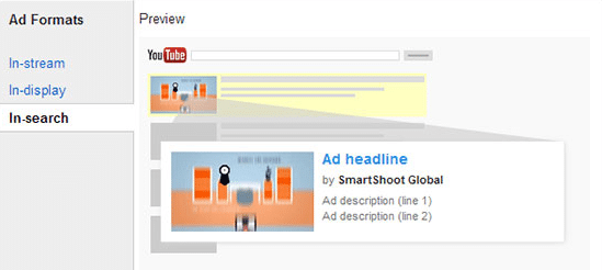 TrueView InSearch consists of displaying your video in search results when certain keywords are searched.
