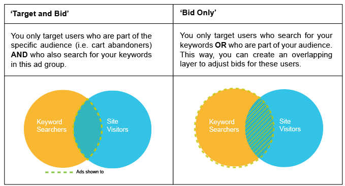 The Bid Only option allows us to target all users in our geotargeting in addition to adding an incremental bid for the audience of your choice. So you might be willing to bet $3.5 for the term “Used car” for User X, but if User X has visited your site before, you might be willing to pay more to appear in the top 4. .