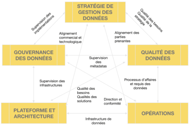 For a more comprehensive approach, a very suitable companion to Gorelix's book are the six key themes of the CMMI's Data Management Maturity Model (DMM) . This framework provides a Fortune 500 (and even NASA) tested methodology that IT and data management teams can work from when planning a large-scale project like a data lake. This is what the relationship between the six data management themes of the DMM model looks like: