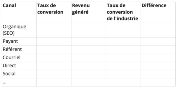 First define an ideal period to analyze your industry (for example, the last 365 days if your activity is subject to strong seasonality, or the last 3 to 6 months if it is not) and keep this same period in the following analyses. Then, note your conversion rates by channel and compare the results to industry statistics to get a better idea of optimization potential. Finally, write down your revenue as well as the share of revenue generated by channel and (ideally) by campaign. This will then allow you to establish an order of priority useful for the effective implementation of your future marketing efforts.