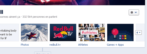 The top of the page will limit the display to 4 thumbnails. These correspond to applications from Facebook or created by the page. The application icon will become much larger since it will appear in large format (111px by 74px). It will therefore be important to communicate more information about your applications through these tiles. Also, the limit of total visible apps will now be set to 12, other apps will no longer be visible to users.