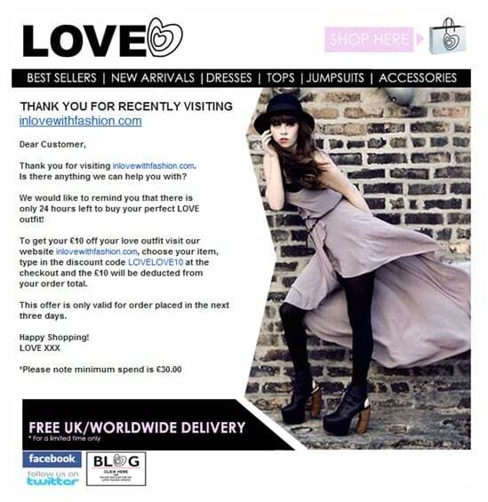 Some specialists recommend sending 3 emails: the first immediately after the abandonment, the second 23 hours after and the last 6 days and 23 hours after the date of the second email (source: Marketing Sherpa ). Although price and time are the 2 biggest factors in abandoning an online purchase, it is not recommended to offer a discount, as this will encourage your consumers to develop a buying behavior. shopping cart abandonment to get the discount. Here are 2 examples: