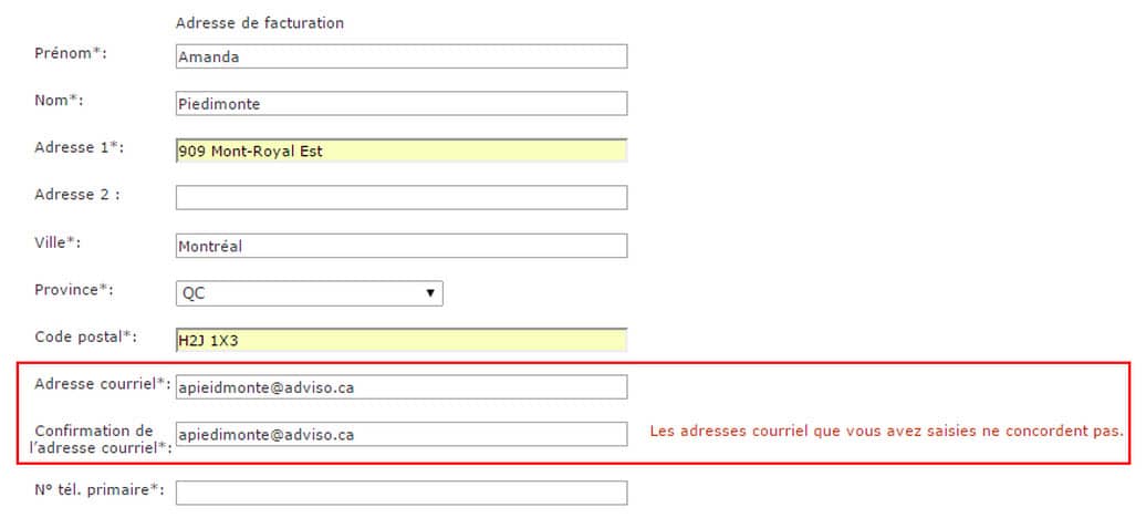Imagine this: you’ve just filled out a long, exhaustive form, you click “Order” and you wait. But then, instead of getting a purchase confirmation, an error message appears, indicating that you’ve entered invalid information. So disappointing! Inline error validation, done field by field and in real time, allows you to minimize errors, reduce cart abandonment, and lower the all-around frustration level of your users. Email addresses, postal codes, and credit card numbers are all elements that can be automatically validated in real time.