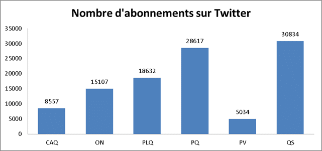 If we look at the number of subscribers on Twitter , one party stands out from the others: the PQ. With more than 138,246 subscribers, it is the party that currently has the largest number.