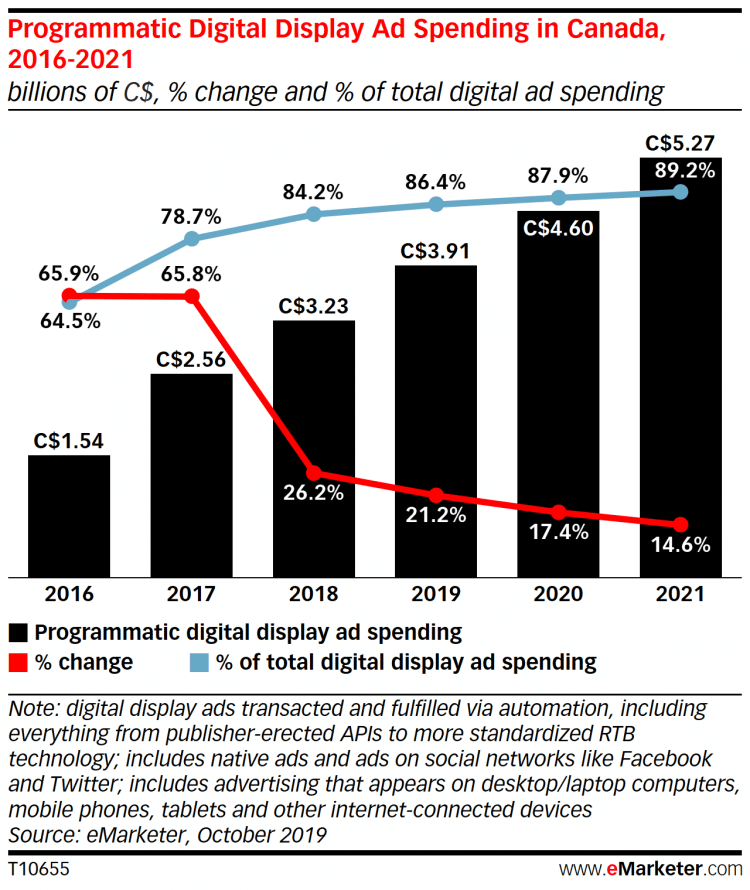 After years of prosperous growth in investments in programmatic buying, we observe that the latter tends to reach a certain plateau. According to eMarketer, over 86% of digital advertising investment is currently in programmatic buying. We have to admit that we have developed a strong dependence on this approach, to such an extent that it is no longer questioned. A real honeymoon, during which programmatic was seen as a miracle solution, a fast and efficient way to reach quality audiences at low cost. On the other hand, our dependence on programmatic buying has had a major negative effect by substantially weakening the Canadian advertising ecosystem. Indeed, the drastic drop in costs per thousand impressions (CPM) has had such an impact on publishers' revenues that they have had no choice but to multiply the advertising space per page, and this, to the detriment of user experience. Moreover, more and more of them are calling loud and clear for a tightening of standards related to the use of personal data. Never mind, the most recent changes in the industry, especially in the management of user data, will force major changes in the programmatic sector, and this revolution is upon us.