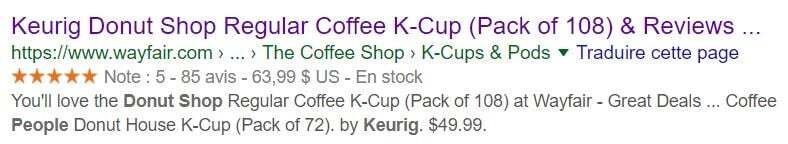 - Increase in conversions: thanks, for example, to the ratings displayed in your snippet that lend additional authority to your product/service.