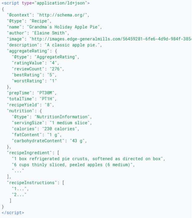 Structured data for a recipe using JSON-LD
