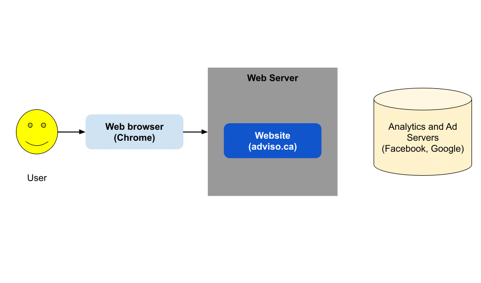 - Web server: infrastructure that hosts a website (ex., adviso.ca) and serves web pages to a web browser