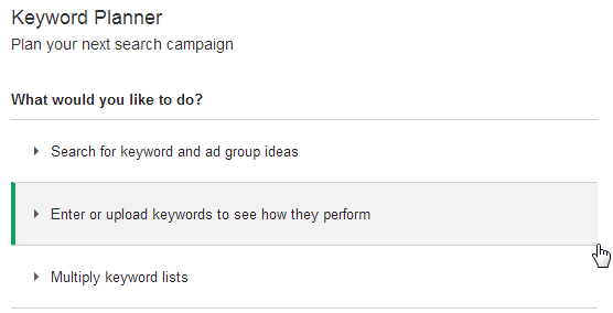 Select the “ Enter or upload keywords to see how they perform ” option.