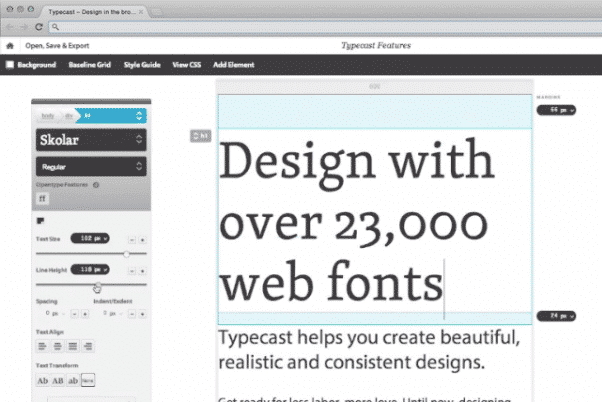 Typecast , for its part, allows you to do web design right from the browser. The web application offers more than 23,000 fonts and offers a preview of the design that has been created directly in the web browser.