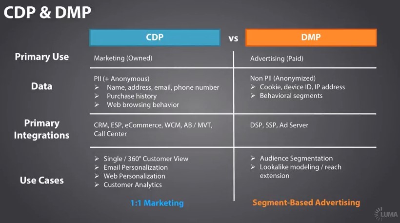 Brian Andersen, quoted earlier, as well as  Michael Katz of mParticle ,  talked about a new acronym, but more importantly a new platform focused on personalizing the user experience with a brand. The CDP is in fact a Customer Data Platform. Here is how this platform differs over DMP according to Andersen: