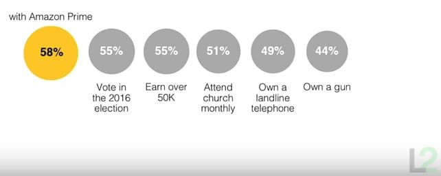 The conference got off to a strong start with  a presentation by Scott Galloway . The latter has covered the position of the  Big Four  (Amazon, Google, Facebook & Apple) across different markets, and predicts that Amazon is by far the company best placed to compete against the other three. Specifically in web marketing, we expect to see Amazon attack the revenues of Google and Facebook to reverse the duopoly that has taken hold. Who would have thought that Google could be dethroned from control of search marketing a few years ago? Yet more than  55% of searches for products start on Amazon , and more than  75% of voice searches are done through Alexa Additionally, now that Alexa connects directly to an Amazon account,  over 58% of US households are  Prime subscribers  :