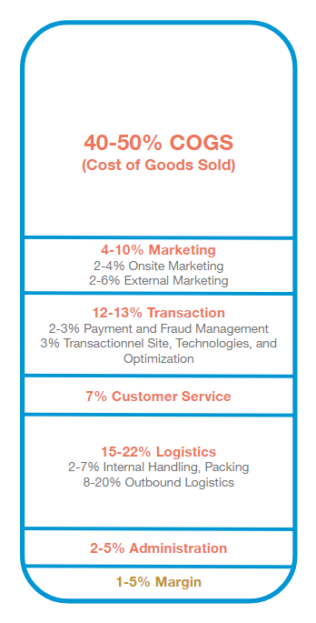 A cost analysis should have a few goals: for each dollar spent on digital technologies, what are the costs for COGS, market entries, transactions, customer services, logistics, or administrative expenses? All of this will inform your understanding of the margin and the biggest expenses.