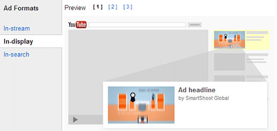 There are three ad formats for videos on YouTube: TrueView InStream, TrueView InDisplay, and TrueView InSearch.