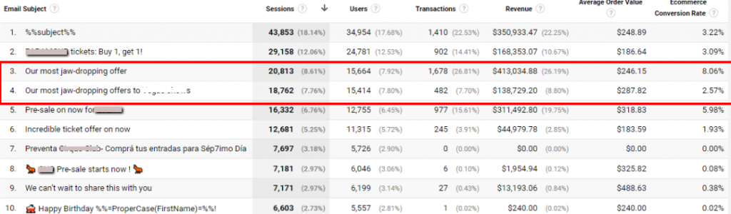 - You can also create a custom report where "email subject" is the first dimension, and then compare the performance of each email subject line in terms of number of sessions, users, transactions, revenue or other KPIs. Since the email subject line tends to be what makes subscribers open or ignore newsletters, having this level of observation can drastically improve email conversion optimization efforts.
