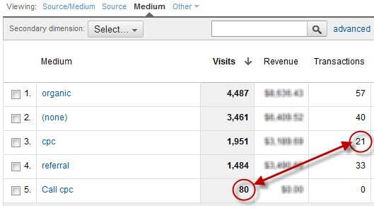 In the image above, the cpc source produced 21 online transactions vs 80 over the phone. Without “call tracking” it would have been impossible to measure the actual performance of this traffic source.