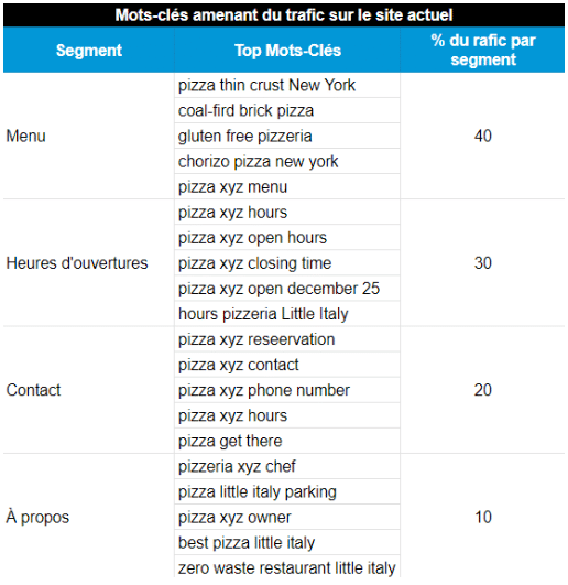 By exporting the data showing which keywords have been driving traffic to the Pizzeria XYZ website over the past year, I can now see what’s working well on my current site.