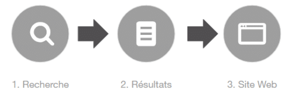 The search engine returns search results categorized in order of how relevant they are to the user’s question. The user identifies the link that seems to best respond to their needs, and moves onto the next step.