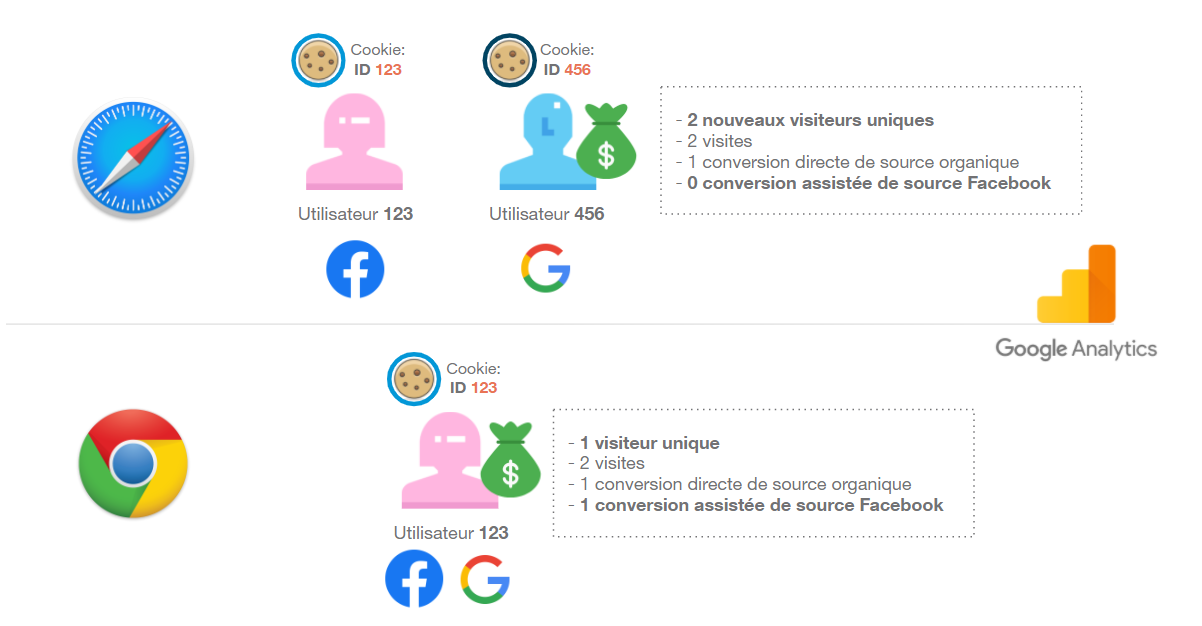 The following data will therefore be counted in Google Analytics, depending on whether Isabelle uses the Google Chrome or Safari browser.