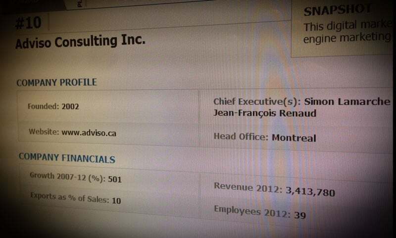 Adviso reconnue pour une 2e fois parmi les 50 entreprises canadiennes ayant la plus grande croissance - Adviso